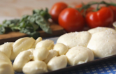 Colocar sobre cada una de ellas una rodaja de mozzarella fresca